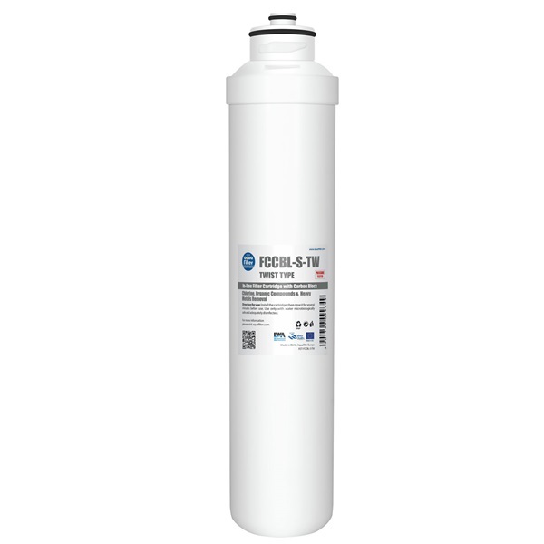 Швидкознімний картридж FCCBL-S-TW це високоякісний карбон-блок виготовлений з суміші активованого бітумного і кокосового вугілля. Головним призначенням даного картриджа є видалення хлору і його похідних з води, однак завдяки додаванню матеріалів з видалення важких металів він відмінно справляється з очищенням води від свинцю, міді, ртуті, стронцію та інших металів.