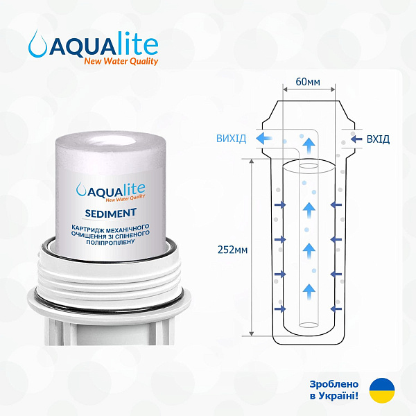 - Фільтрує частинки розміром до 1 мікрон, забезпечуючи високу якість очищення води.