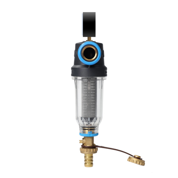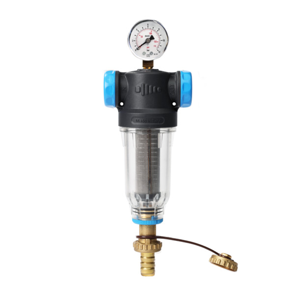 Дана модель фільтра обладнана манометром для контролю тиску і надійно захистить ваше обладнання від поломок пов'язаних з механічними забрудненнями. Фільтр поставляється з перехідниками, що дозволяє його підключати згідно вашим вимогам - внутрішнє різьблення 1/2", зовнішня різьба 1/2", зовнішня різьба 3/4".