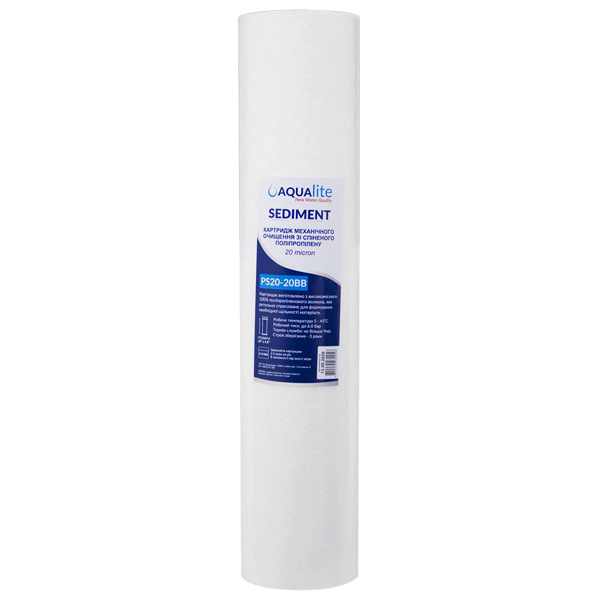 Опис Картридж поліпропіленовий Aqualite PS20M20BB Ø107x506мм 20mcr 45°C (очищення від механічних домішок) (упаковка 3шт)