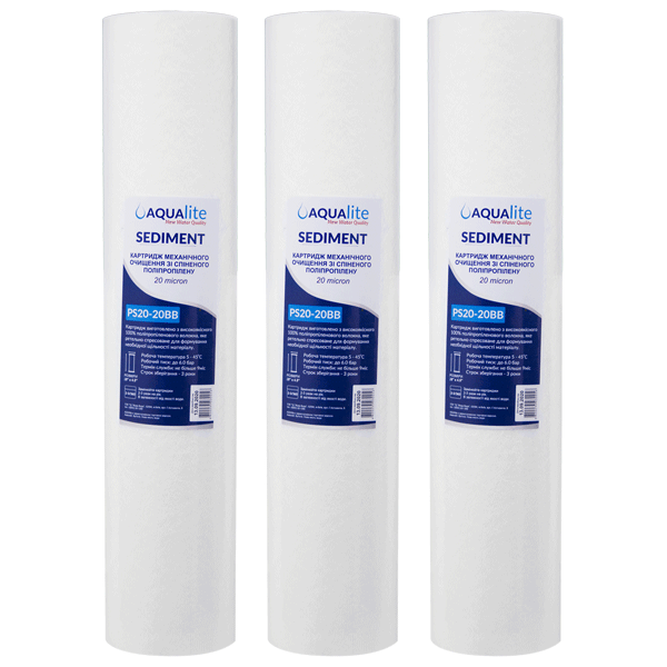 Набір картриджів Aqualite PS20M20BB для механічного очищення води. Видаляє з води пісок, іржу та інші забруднення.