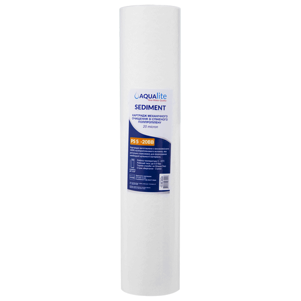 Опис Картридж поліпропіленовий Aqualite PS5M20BB Ø107x506мм 5mcr 45°C (очищення від механічних домішок) (упаковка 6шт)