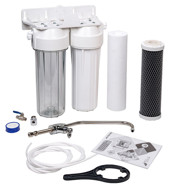 Використовувані матеріали повністю відповідають всім гігієнічним нормам, крім того, вони екологічні і не мають негативного впливу на якість води. У цьому очисному пристрої поєднуються компактні розміри, висока довговічність та продуктивність. Його фільтруючі пристрої очищають комунальну воду від механічних домішок, піску, пестицидів, хлорованих сполук, а також видаляють неприємний запах або кольору. Вода стає м'якою, з неї видаляється залізо.