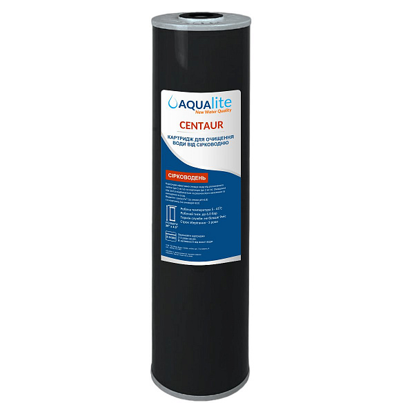 Картридж для видалення сірководню Aqualite Centaur GAC-CAT розроблений для ефективного видалення сірководню (H2S) та заліза з води. Основою фільтруючого матеріалу є активоване вугілля, спеціально модифіковане для високої адсорбції сірководню, що робить цей картридж незамінним елементом у системах комплексного очищення води.