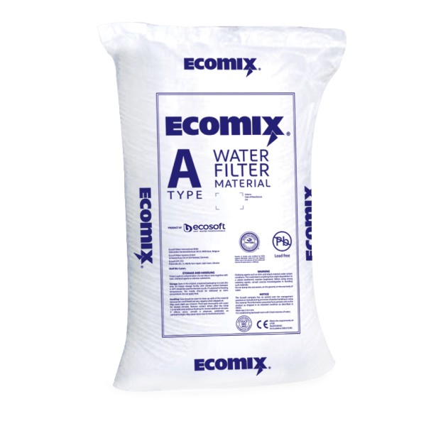 1. ECOMIX® А - найбільш поширений тип фільтруючого завантаження, ефективно знижує жорсткість, що видаляє залізо і марганець в незалежності від концентрації органічних сполук, рівня рН і мінерального складу вихідної води.