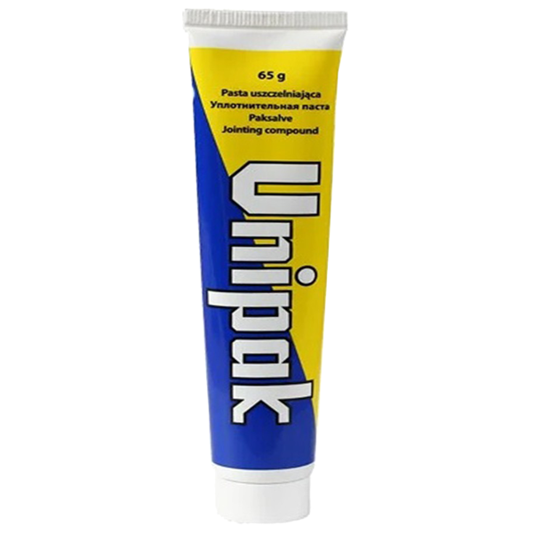 Паста Unipak в тюбику 65 грамів використовується в комплексі з лляними ущільнювачами в різьбових з'єднаннях трубопроводів, фітингів і розподільних приладів подачі води і пара низького тиску. Даний матеріал забезпечує високу ступінь герметичності стику, захист льону від впливу хімічних речовин, розчинених у воді, а метал від корозії.