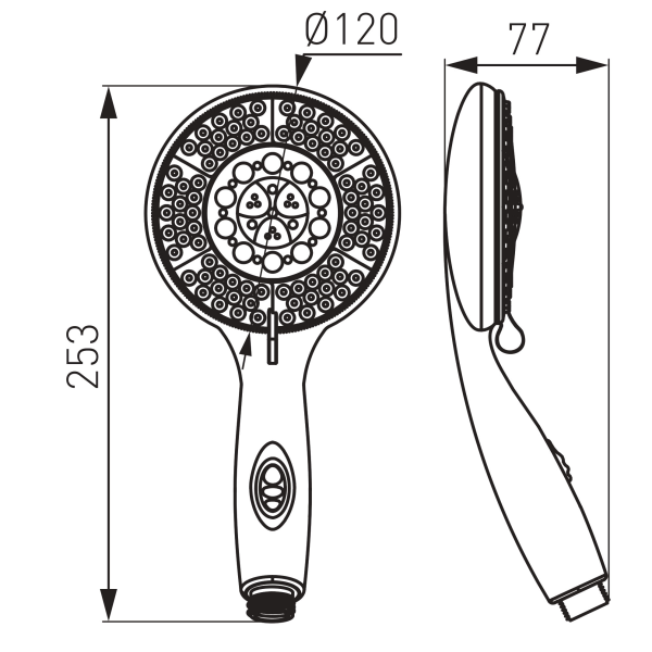 Лейка для ручного душу з шістьма режимами (дощ, масаж, сильний дощ, змішаний, легкий, туман).