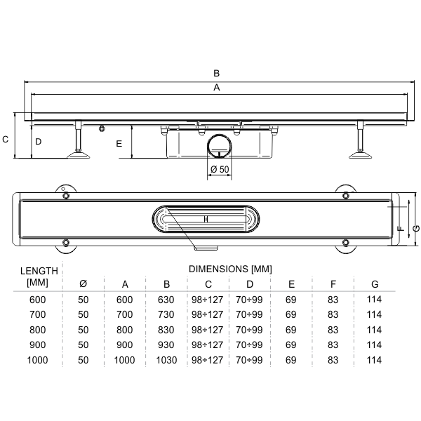 Матеріал основного корпусу: нержавіюча сталь EN 1.4301 / AISI 304