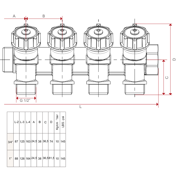 Розподільчий колектор з перекривають вентилями з виходами НР підходить для фітингів для мідних, PEX, полібутиленові або металопластикових трубопроводів.
