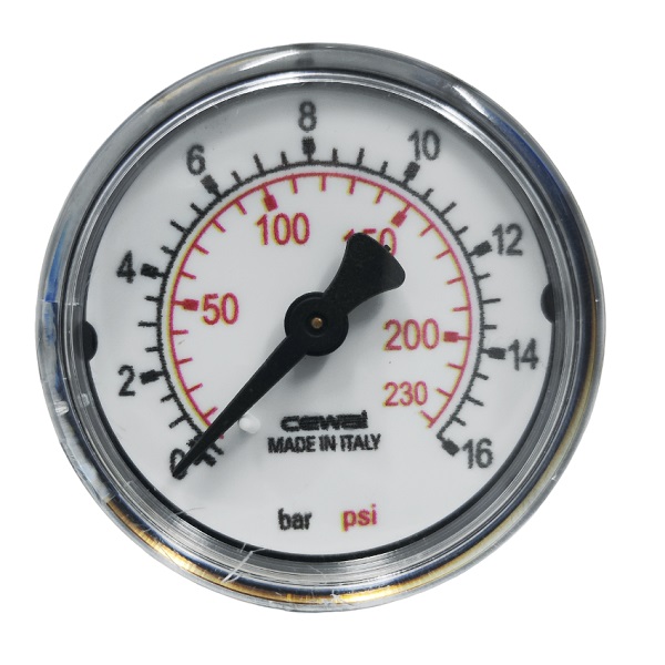 Манометр фронтальний виробництва фірми Cewal - призначений для вимірювання тиску до 16 бар. Підключення 1/4".