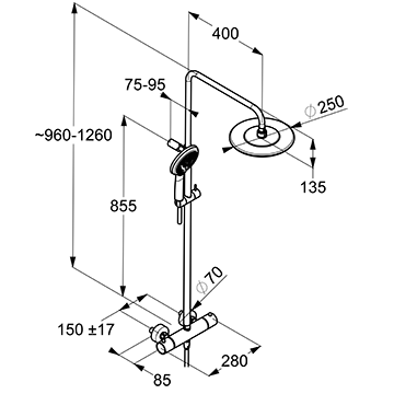 ексцентричний введення G1 / 2 відстань 150 ± 20 мм