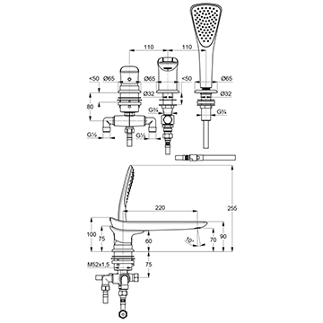 Консольний змішувач для ванної кімнати, з висувною душовою ручкою Kludi Ambienta.