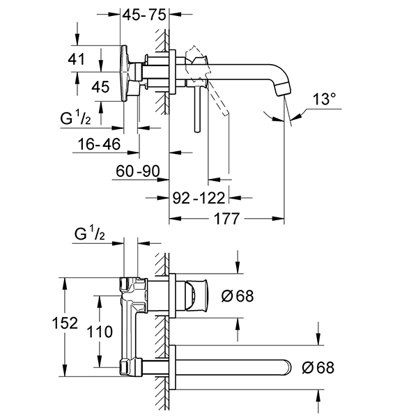 Змішувач для умивальника GROHE BauClassic настінний