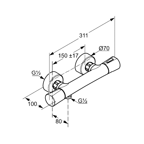 Консольний змішувач для душа, з термостатом Kludi Zenta.