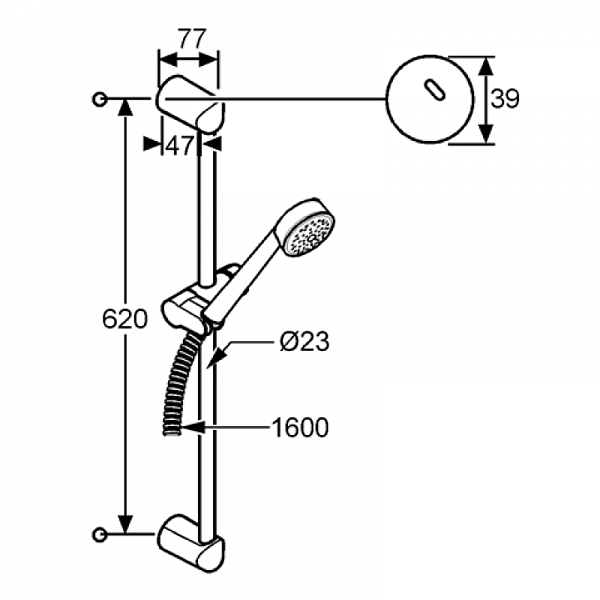 - KLUDI ZENTA настінна душова штанга 600 мм