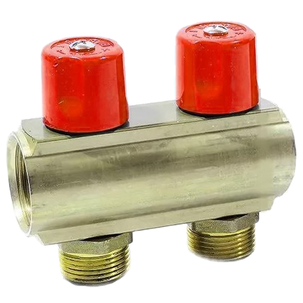 Розподільчий колектор з двума вентилями, з виходами НР підходить для мідних фітингів, PEX, полібутиленові або металопластикових трубопроводів.