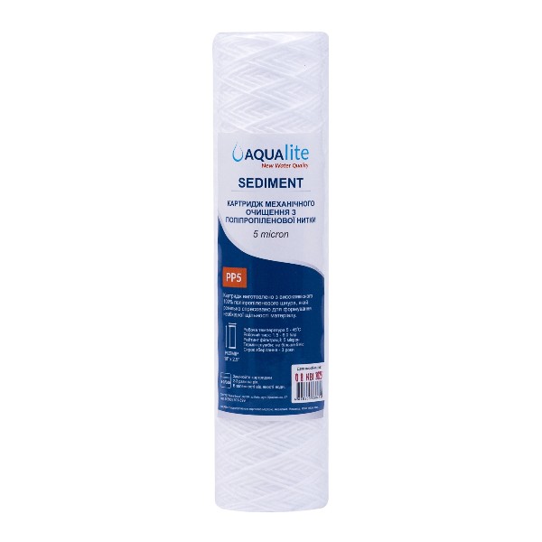 Картридж з поліпропіленової нитки Aqualite PP5 призначений для ефективного видалення механічних домішок з води, таких як пісок, іржа, мул та інші тверді частинки. Завдяки високоякісному поліпропіленовому шнуру, цей картридж забезпечує надійне очищення води та тривалий термін служби.