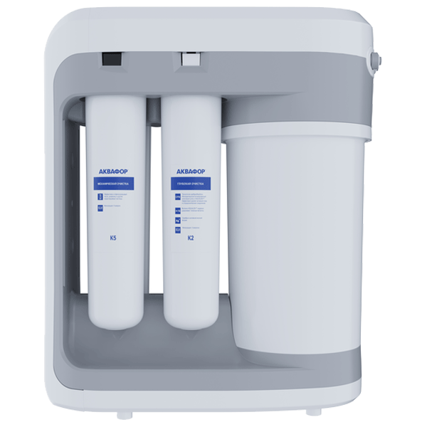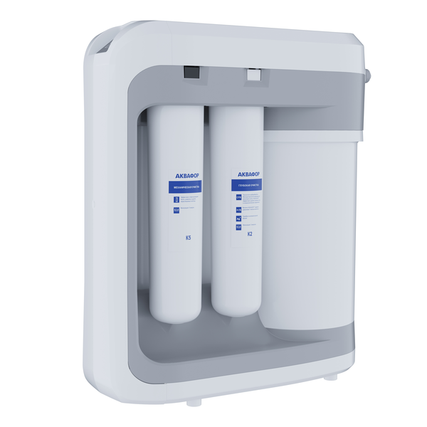Вам не потрібно пам'ятати про заміну картриджів: про неї нагадає звукова і колірна індикація ресурсу кожного модуля. Вам не потрібно вимірювати тиск у водопроводі або думати про покупку насоса перед установкою. Вбудований насос забезпечує стабільну роботу навіть при низькому тиску від 0,9 атм. Робота насоса майже безшумна.