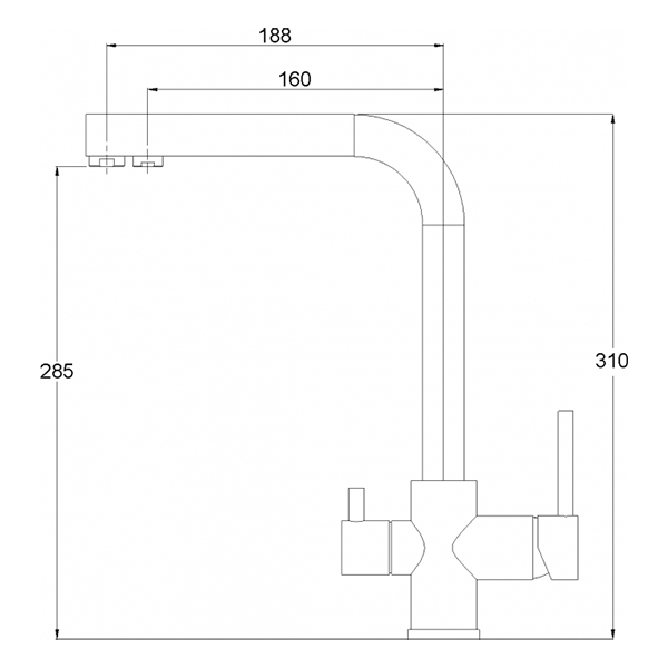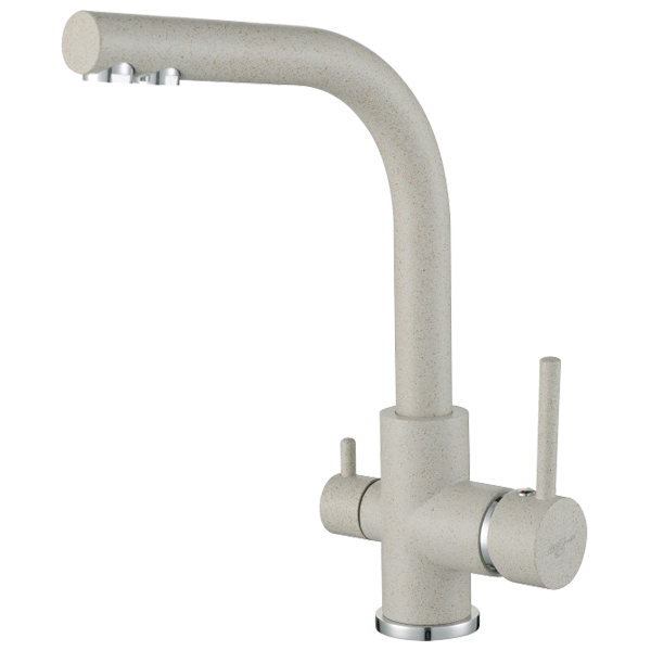 Відмінною рисою змішувача Akvaduo є другий вихід, спеціально призначений для подачі води безпосередньо із системи очищення води і позбавляє вас від необхідності встановлювати додатковий кран на мийці. Потоки очищеної та водопровідної води не змішуються завдяки високоякісному керамічному картриджу, для подачі очищеної води передбачена окрема ручка.