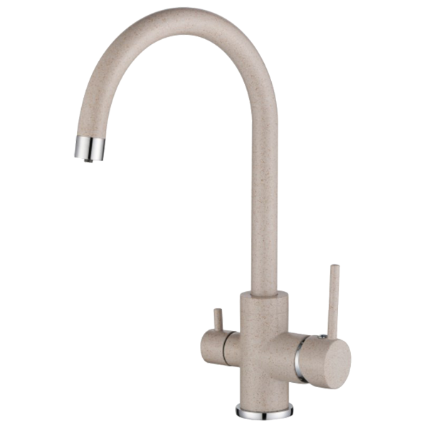 Відмінною рисою змішувача Sabiaduo є другий вихід, спеціально призначений для подачі води безпосередньо із системи очищення води і позбавляє вас від необхідності встановлювати додатковий кран на мийці. Потоки очищеної та водопровідної води не змішуються завдяки високоякісному керамічному картриджу, для подачі очищеної води передбачена окрема ручка.