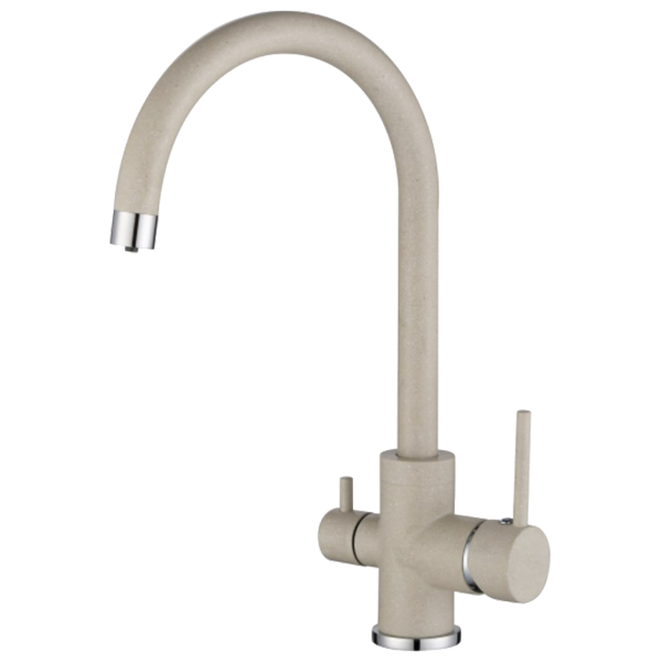 Відмінною рисою змішувача Sabiaduo є другий вихід, спеціально призначений для подачі води безпосередньо із системи очищення води і позбавляє вас від необхідності встановлювати додатковий кран на мийці. Потоки очищеної та водопровідної води не змішуються завдяки високоякісному керамічному картриджу, для подачі очищеної води передбачена окрема ручка.