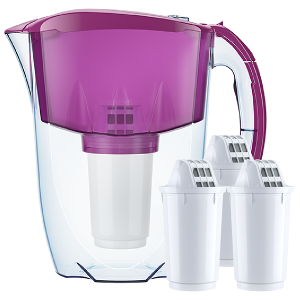 Фільтр-глечик. Колір - цикломен. Загальний обсяг - 2,8 л. Обсяг очищеної води - 1,3л. Комплектація - фільтр-глечик, 4 картриджа А5. Країна походження – Естонія. Країна реєстрації бренду – Фашистська росія.