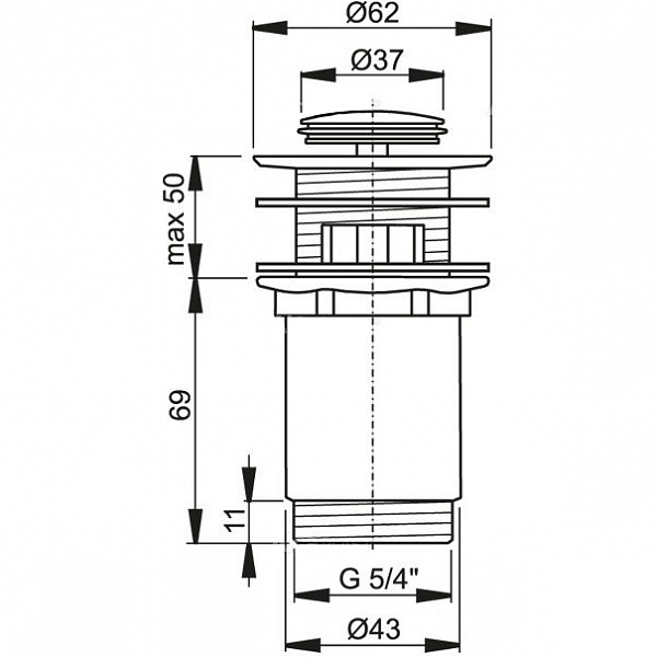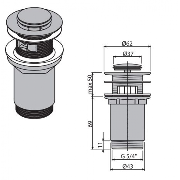 AlcaPlast A391 click/clack 5/4", суцільнометалевий з переливом, з малою кришкою.