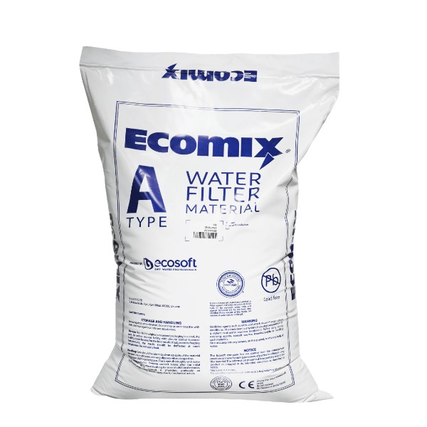 - ECOMIX® А - найбільш поширений тип фільтруючого завантаження, ефективно знижує жорсткість, що видаляє залізо і марганець в незалежності від концентрації органічних сполук, рівня рН і мінерального складу вихідної води.