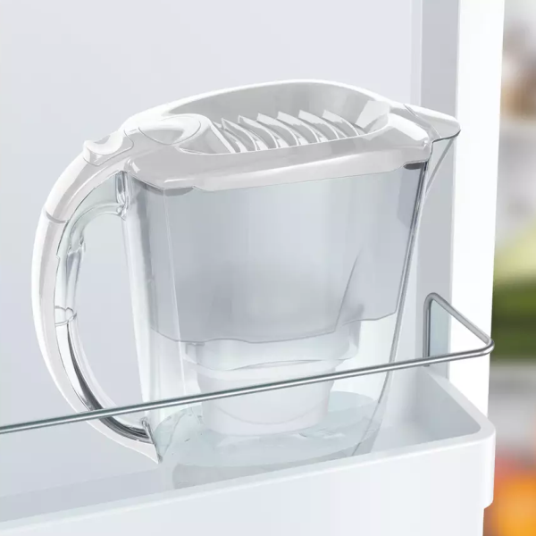 стильному тонкому дизайну, що дозволяє зберігати його всередині більшості дверей холодильника. Включаючи кришку для легкого заповнення та сумісність з 5-ступінчастою технологією фільтрації швидкого потоку Aqua Optima, Oria забезпечить чистішу воду чудового смаку для всієї родини.