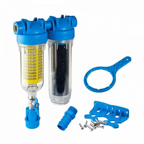 Atlas HYDRA RAINMASTER DUO 1” - це сучасна система магістрального очищення води, яка забезпечує ефективне механічне та сорбційне очищення в одному корпусі. Завдяки латунним вставкам, багаторазовому механічному картриджу та сорбційному елементу з активованим вугіллям, фільтр ідеально підходить для приватних будинків, дач, котеджів і технічних систем.