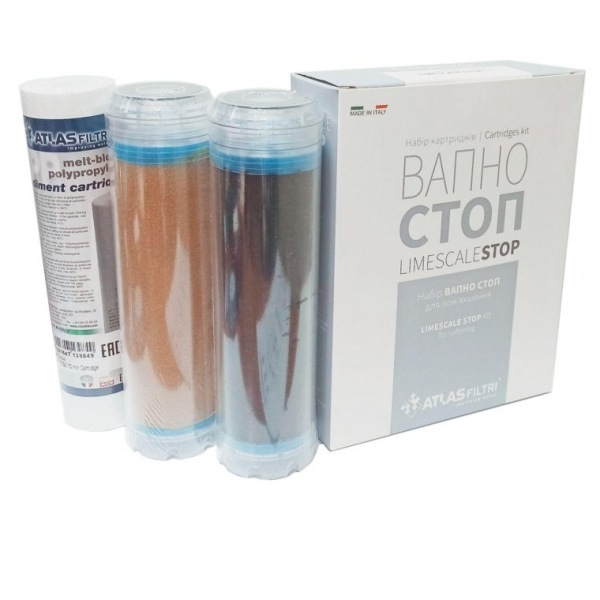 Набір картриджів для систем зворотного осмосу та проточних фільтрів виробництва фірми Atlas Filtri. У набір входять 3 картриджі для очищення води від різних забруднень. Усі картриджі виробляються в Італії, відповідають суворим санітарним нормам та сертифіковано NSF. Картриджі повністю сумісні з будь-якими фільтрами 10”.