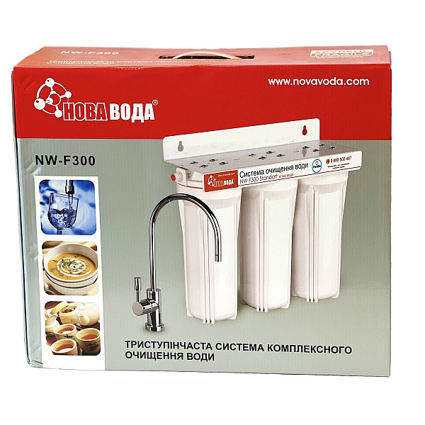 Проточний фільтр НОВА ВОДА NW-F310 Стандарт — це триступенева система очищення води для побутового використання. Завдяки ефективному поєднанню механічної та вугільної фільтрації, система забезпечує очищення водопровідної води від основних типів забруднень, покращуючи її якість, запах і смак. Компактна конструкція дозволяє встановити фільтр під мийкою без потреби в окремому накопичувальному баку.