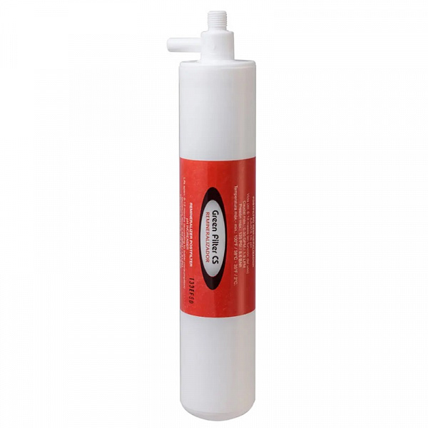Вода після очищення методом зворотного осмосу є на 99.8% знесоленою. Іншими словами з води крім шкідливих елементів видалені також і корисні для організму мінерали та мікроелементи. Для того щоб відновити в воді набір корисних мінералів використовується картридж - мінералізатор Puricom Greenfilter CS.