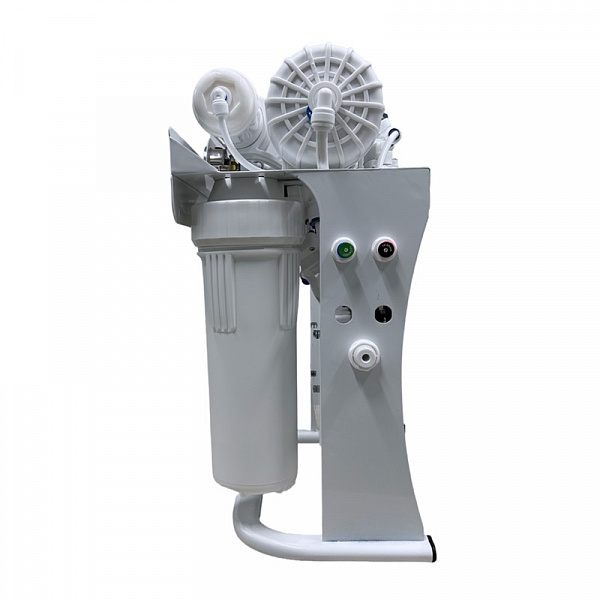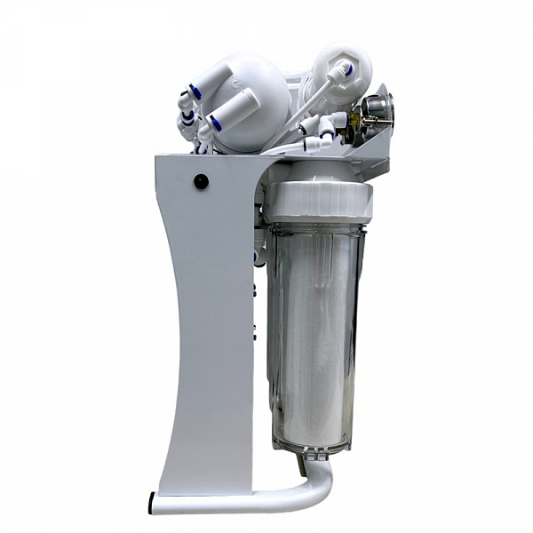 - Працює без накопичувальної ємності. Завдяки одній високопродуктивній мембрані на 500 галонів і насосу, вода фільтрується швидко, 0,6-1,0 літрів на хвилину, що забезпечує комфортну експлуатацію системи. Такий тип фільтрації дозволяє завжди отримувати "свіжу" воду, без зберігання в ємності.
