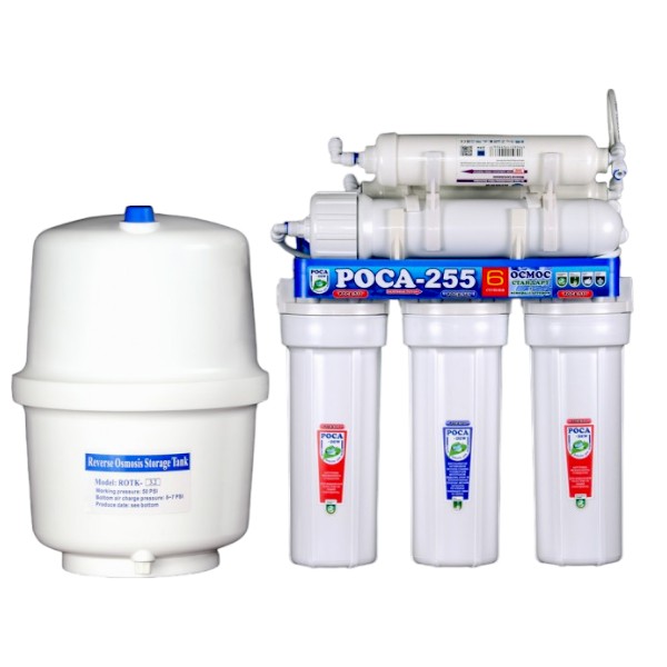 Фільтр з накопичувальним баком встановлюється під мийкою, підключається до водопроводу, має в комплекті окремий кран очищеної води та всі інші деталі, необхідні для монтажу і експлуатації. Працює при тиску в системі водопостачанняgt; 3кг/см, при меншому тиску використовується фільтри "РОСА-261", "РОСА-265" з насосом.