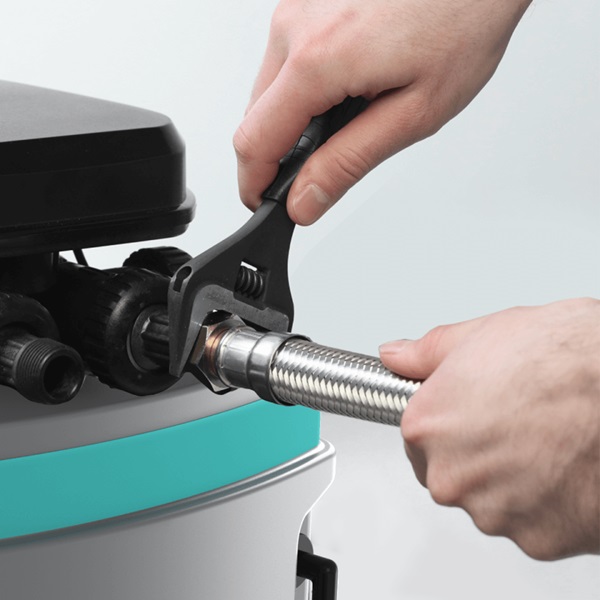 Процес регенерації полягає у промиванні іонообмінної смоли розчином кухонної солі, що відновлює її пом'якшувальні властивості. Регенерація проводиться автоматично за допомогою програмованого керуючого клапана, який налаштовується відповідно до об'єму водоспоживання та рівня жорсткості води. Регенерація займає 80–110 хвилин і споживає 2,5–4,0 кг солі та 0,25 м³ води.