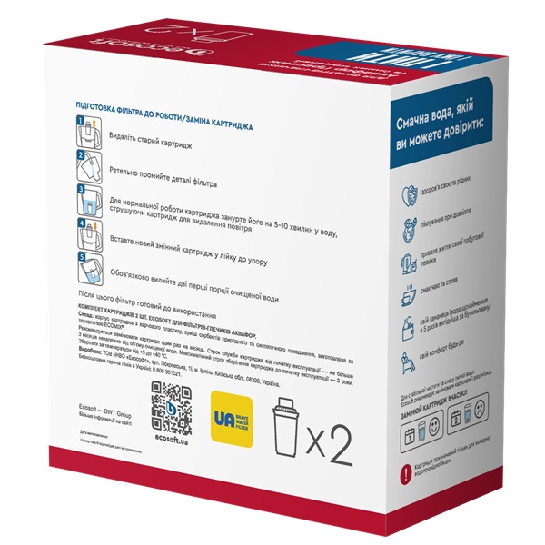 Перед встановленням нового картриджа, промийте глечик, замочіть картридж у воді на 15-20 хвилин. Встановіть картридж у глечик, наповніть його водою та дайте їй повністю пройти через фільтр. Заміна рекомендується кожні 1-2 місяці.