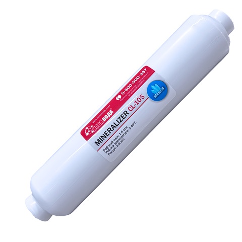 Мінералізатор Нова Вода CL10-S призначений для збагачення очищеної зворотним осмосом води корисними мінералами. Він встановлюється після осмотичної мембрани та відновлює природний мінеральний склад води, покращуючи її смак і користь для організму. Підходить до більшості систем зворотного осмосу з підключенням 1/4".