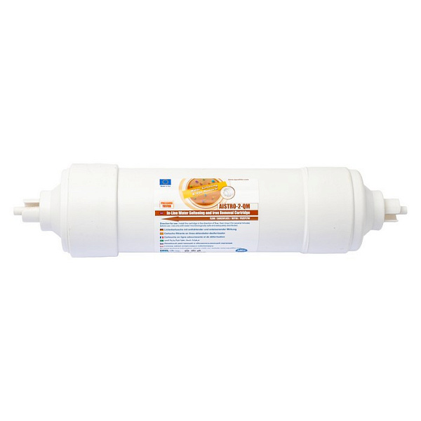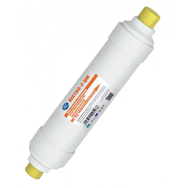 Картридж Aquafilter AISTRO-2-QM призначений для ефективного зниження жорсткості води в системах зворотного осмосу. Завдяки спеціальному фільтрувальному матеріалу на основі катіонообмінної смоли, картридж замінює іони кальцію та магнію на іони натрію, запобігаючи утворенню накипу в побутових приладах.