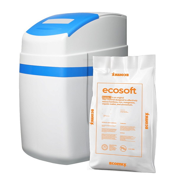 - Комплектація: скловолоконна колонна, корпус кабінетного типу, керуючий клапан Clack CI, завантаження Ecomix C - 12 л