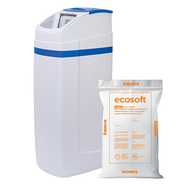 - Комплектація: скловолоконна колонна, корпус кабінетного типу, керуючий клапан Clack CI, завантаження Ecomix C - 25 л
