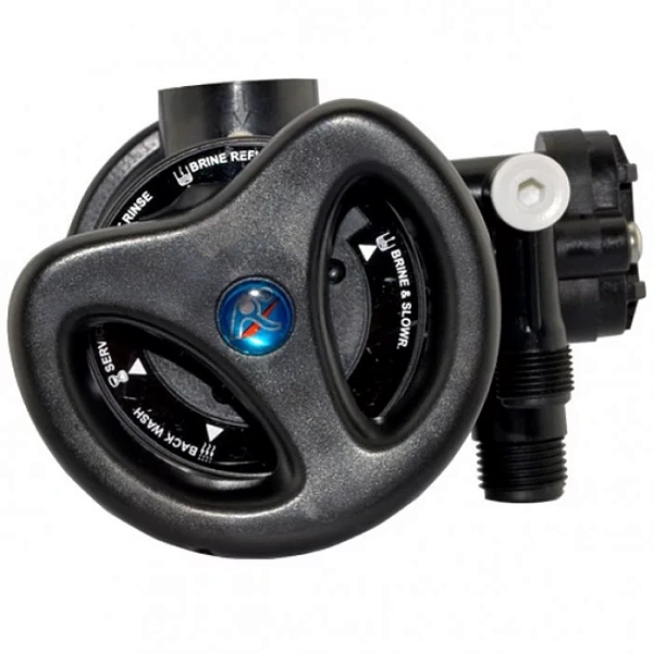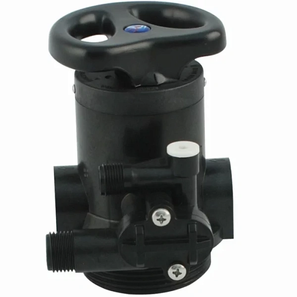 Runxin F64B - ручний багатопозиційний клапан для побутових систем пом'якшення води. Використовується з іонообмінною смолою та дозволяє виконувати всі етапи регенерації: зворотне промивання, засмоктування сольового розчину, повільне та швидке промивання. Підходить для невеликих та середніх пом'якшувачів з балонами 6" - 12".