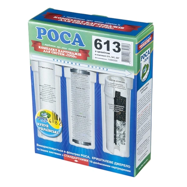 Роса 613 - це спеціалізований комплект картриджів для трьохступеневих фільтрів очищення води, розроблений для ефективного видалення механічних домішок, хлору, органіки та зниження концентрації амонію та важких металів завдяки цеоліту. Набір підходить для побутових фільтрів стандарту 10" та забезпечує комплексну підготовку води для пиття та побутових потреб.
