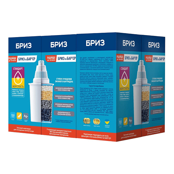 Опис Картридж для фільтра глечика Бриз Стандарт+ (для фільтрів: Бар'єр) BRK0259 6шт